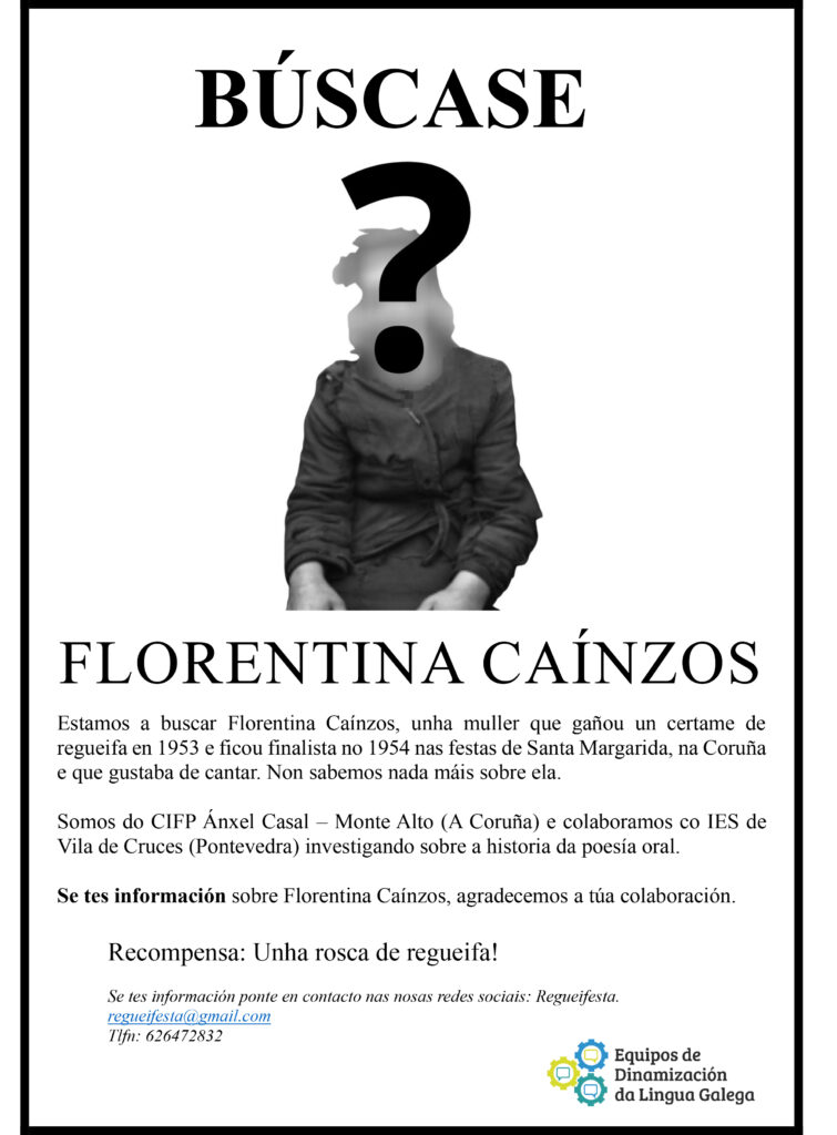Estamos a colaborar co Instituto de Vila de Cruces (Pontevedra) nunha investigación sobre a historia da poesía oral. Se tes información, contacta con nós!