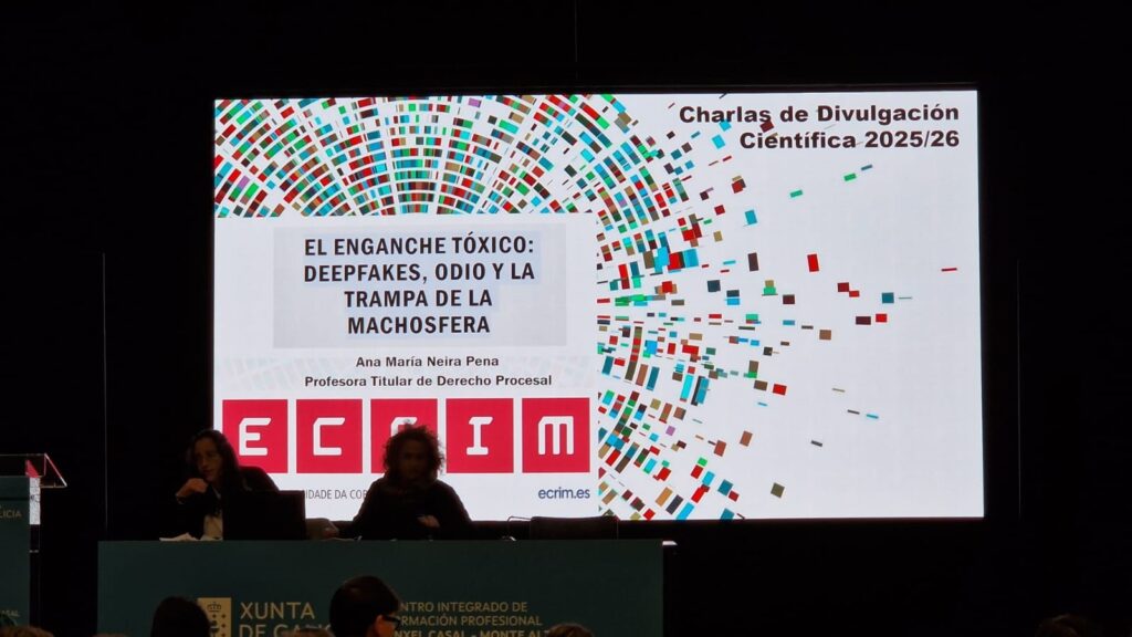 O CIFP Ánxel Casal–Monte Alto acolleu o xoves 22 de xaneiro a charla “O enganche tóxico: os discursos de odio nas redes. Deepfakes, odio e a trampa da machosfera”, impartida pola doutora en Dereito Ana María Neira Pena, profesora da Universidade da Coruña e enmarcada dentro das Charlas de Divulgación Científica da UDC.
