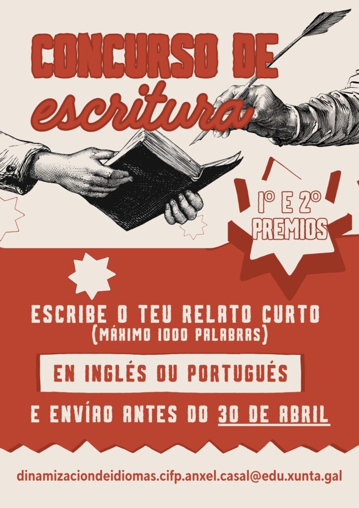Xa está aberto o prazo para o concurso de escritura! Lembrade enviarnos os vosos relatos curtos (máximo 1.000 palabras) en INGLÉS ou PORTUGUÉS antes do 30 de abril a dinamizaciondeidiomas.cifp.anxel.casal@edu.xunta.gal