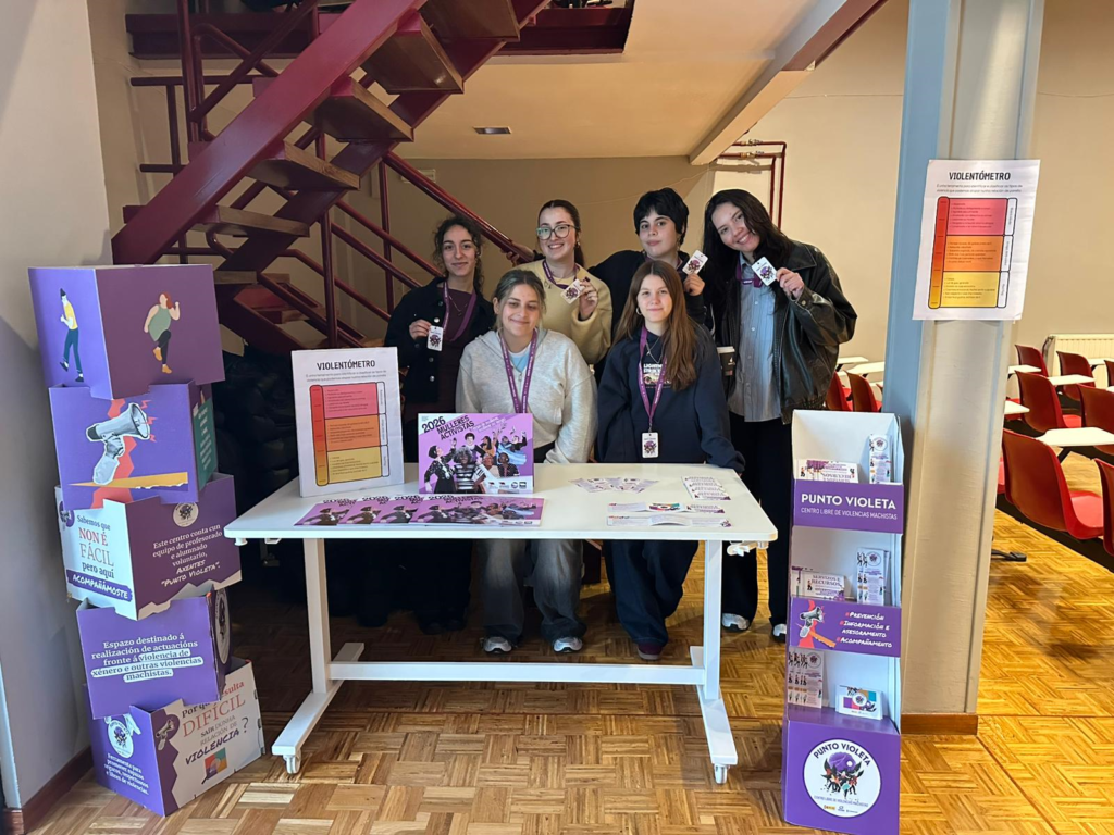 Durante a xornada tamén estivo activo un Punto Violeta, un espazo de información, sensibilización e apoio fronte ás violencias machistas. Este punto foi xestionado por alumnas voluntarias do Equipo de Igualdade, que ofreceron información e contribuíron a crear un ambiente de respecto, convivencia e compromiso coa igualdade.