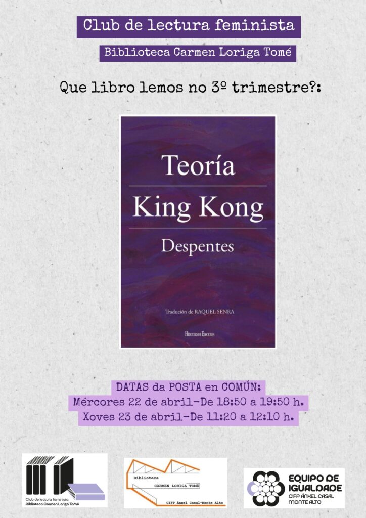O libro escollido é “A teoría de King Kong ”, da escritora francesa Virgine Despentes, un libro que sen dúbida daranos para falar e reflexionar conxuntamente.