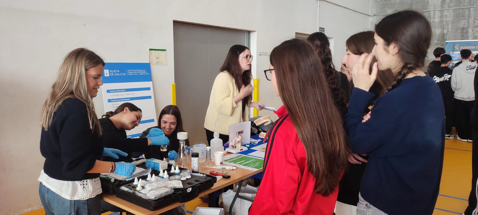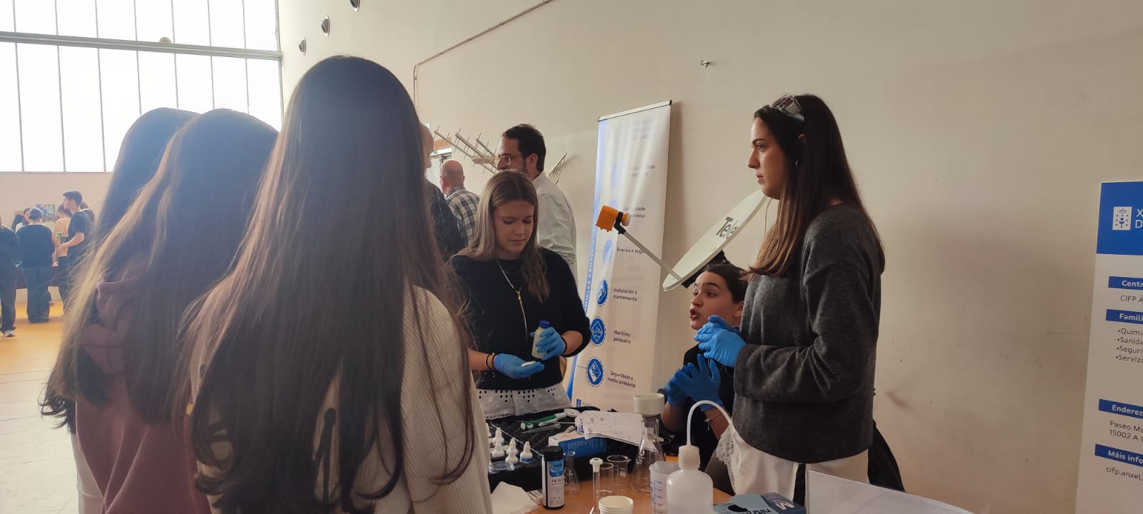 O obxectivo da xornada foi achegar a nosa oferta formativa aos futuros estudantes. Destacou especialmente a colaboración do alumnado do ciclo de Química e Saúde Ambiental, que ademais de resolver dúbidas e dar información sobre as saídas profesionais, realizou diversas demostracións prácticas. Participou tamén o Departamento de Orientación e profesorado do centro.